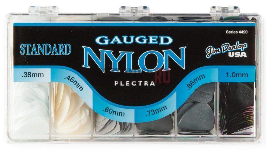 Ищешь, где купить Набор медиаторов Dunlop 4420 Nylon Standard, 6 толщин, коробка 432 шт.? Заказывай на Струнки.ру!