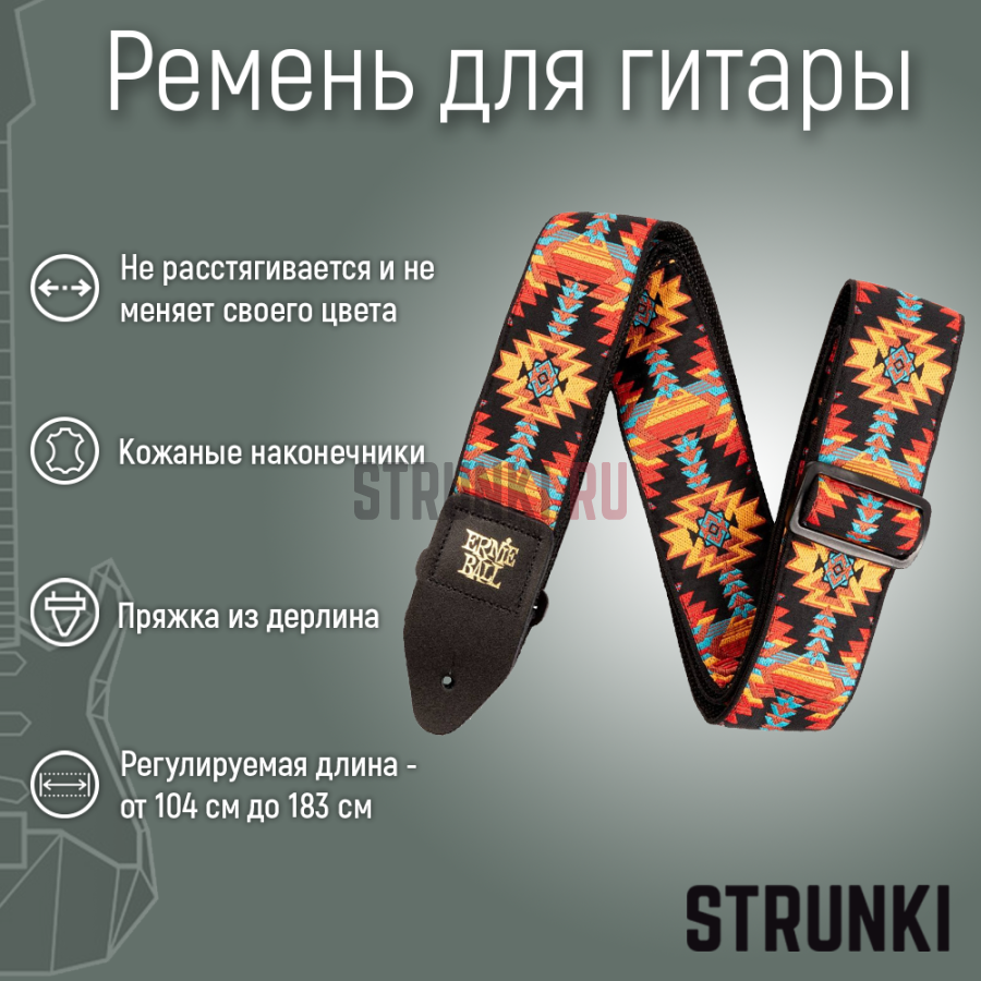 Ищешь, где купить Ремень для гитары ERNIE BALL 5324 Jacquard Albuquerque Sunset, красно-черный, с рисунком? Заказывай на Струнки.ру!