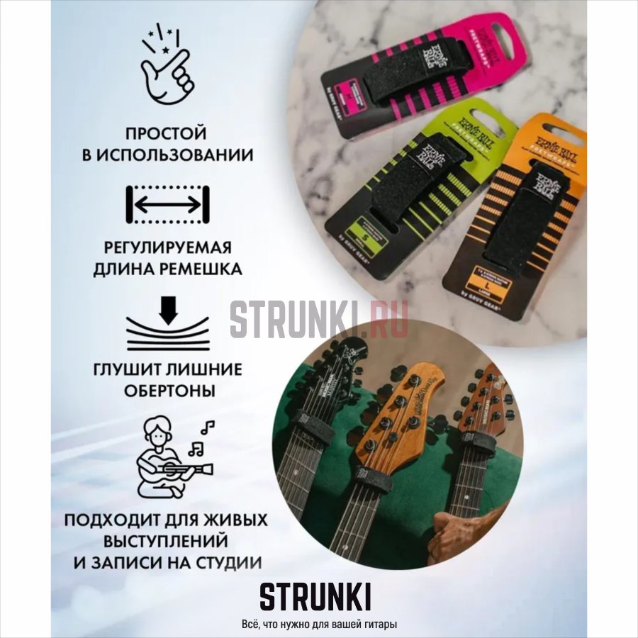 Заглушка для струн ERNIE BALL 9612 от Ernie Ball и Gruv Gear — это профессиональный аксессуар для демпфирования/глушения струн, который просто необходим профессиональному сессионному гитаристу или просто любителю тэппинга. Используй Ernie Ball FretWrap, чтобы максимально эффективно отрезать лишние обертона и симпатический резонанс, которые могут возникать при записи, во время концерта, при игре тэппингом или в других креативных ситуациях. Регулируемая длина ремешка позволяет контролировать степень демпфирования, а в то время, когда вам не нужен демпфер, вы можете просто сдвинуть его на голову грифа вашей гитары – прост в использовании, не требует никаких модификаций.