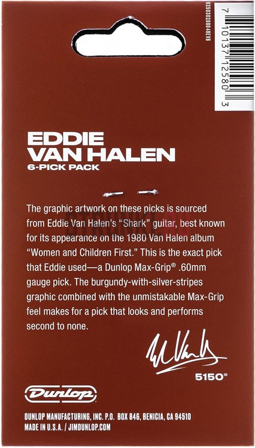 Графическое оформление этих медиаторов основано на внешнем виде гитары Эдди Ван Халена 5150 Kramer.