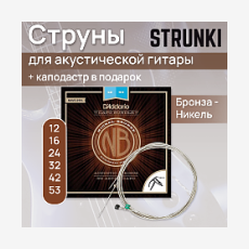 Ищешь, где купить Струны для акустической гитары D'Addario Nickel Bronze NB1253 + Каподастр PW-CP-10 12-53? Заказывай на Струнки.ру!