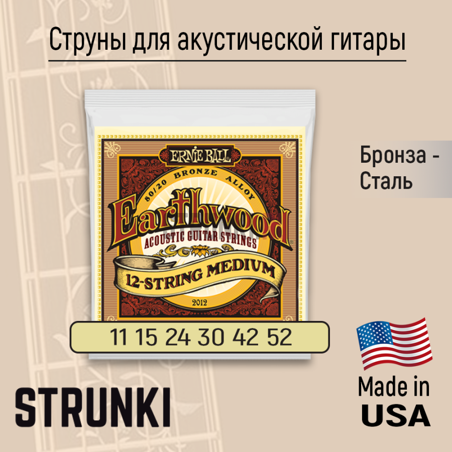 Ищешь, где купить Струны для акустической гитары Ernie Ball 2012 Earthwood Medium 11-52? Заказывай на Струнки.ру!