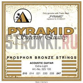 Струны из акустической фосфористой бронзы PYRAMID отличаются особой прочностью и устойчивостью к нагрузкам.