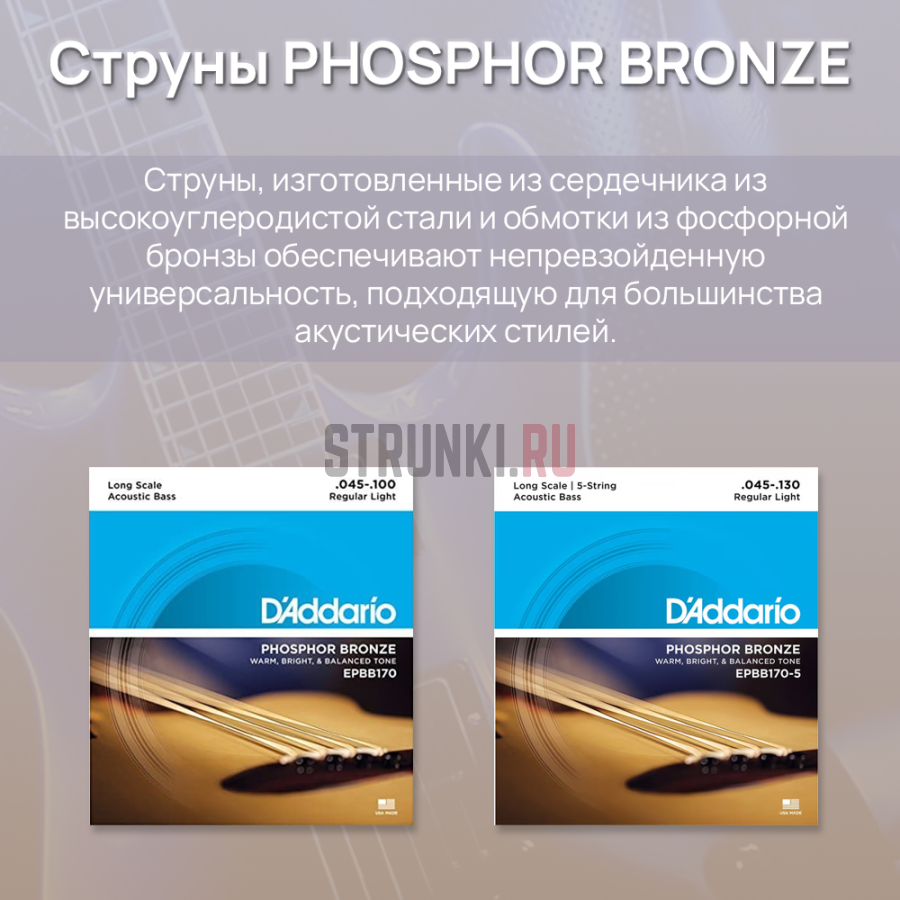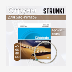 Ищешь, где купить Струны для акустической бас-гитары D'Addario EPBB170 Phosphor Bronze 45-100? Заказывай на Струнки.ру!
