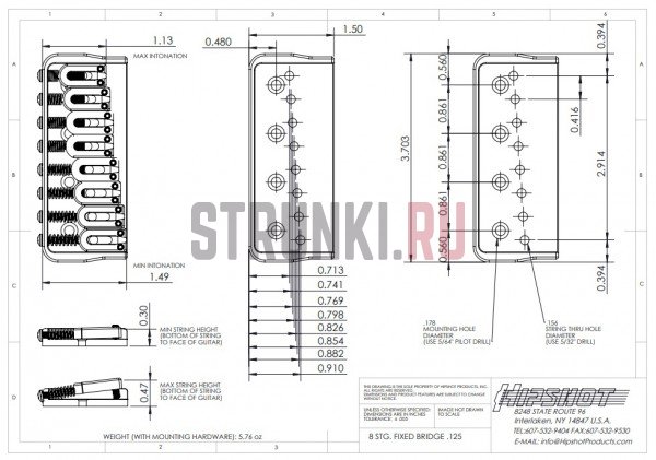 Ищешь, где купить Бридж фиксированный для 8-струнной гитары HIPSHOT 41080B, черный? Заказывай на Струнки.ру!