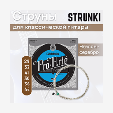 Pro-Arte - струны D'Addario для классической гитары премиум класса, имеющие мировую популярность. Все первые струны серии Pro-Arte сортируются на современнейшем лазерном оборудовании, на котором проверяется диаметр струны и её натяжение, обеспечивая истинное звучание и четкие верха в каждом комплекте. Басовые струны комплекта Pro-Arte имеют посеребренную оплетку на многожильном нейлоновом тросике, которые дают теплое, ожидаемое, но выделяющееся звучание.