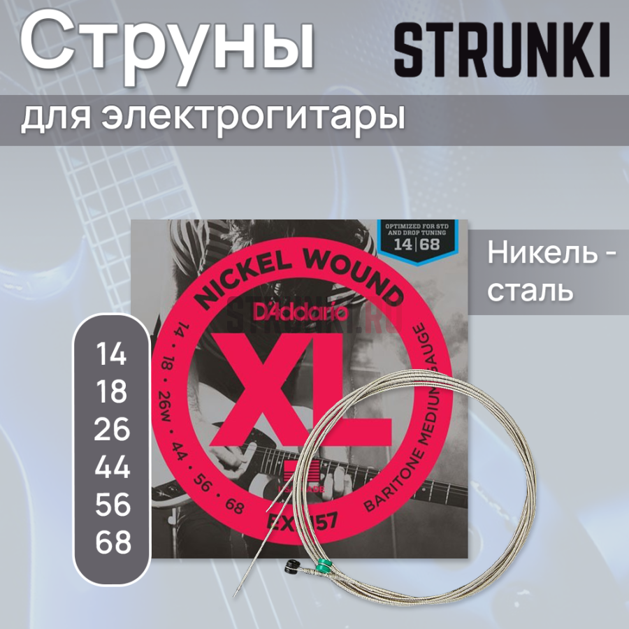 Ищешь, где купить Струны для электрогитары D'Addario EXL157 14-68? Заказывай на Струнки.ру!