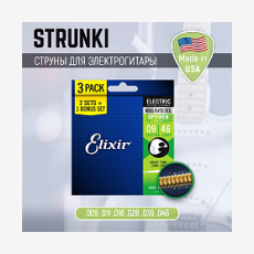 Ищешь, где купить Струны для электрогитары Elixir 16551 Optiweb Custom Light 3-Pack 9-46? Заказывай на Струнки.ру!