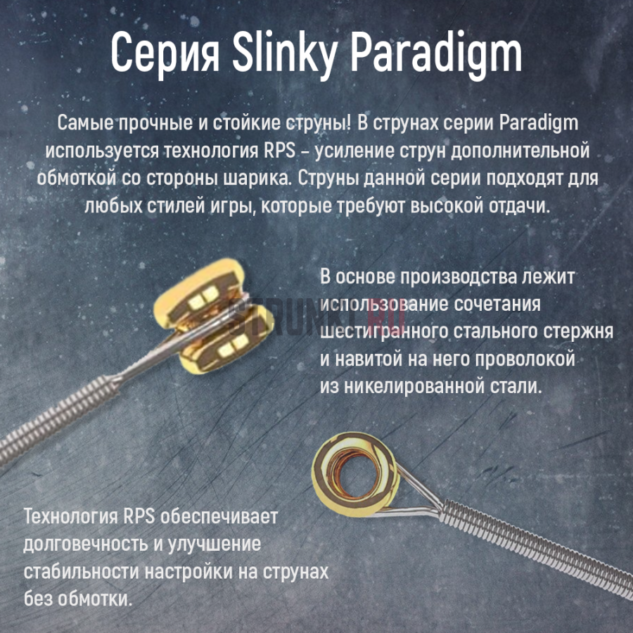 Струны Ernie Ball Paradigm – это самые надежные гитарные струны из всех существующих на планете. Их отличает беспрецедентная долговечность и прочность с сохранением живого тона и ощущений от игры на все 100 процентов. Все струны (с обмоткой и без) созданы с использованием фирменной сверхпрочной стали от Ernie Ball, а патентованное армирование на конце шарика каждой струны без обмотки делают их особенно гибкими и устойчивыми к высоким нагрузкам. Вдобавок к этому, все струны проходят специальную термическую обработку плазмой с целью создания более стабильной микроструктуры покрытия и устойчивости к коррозии.