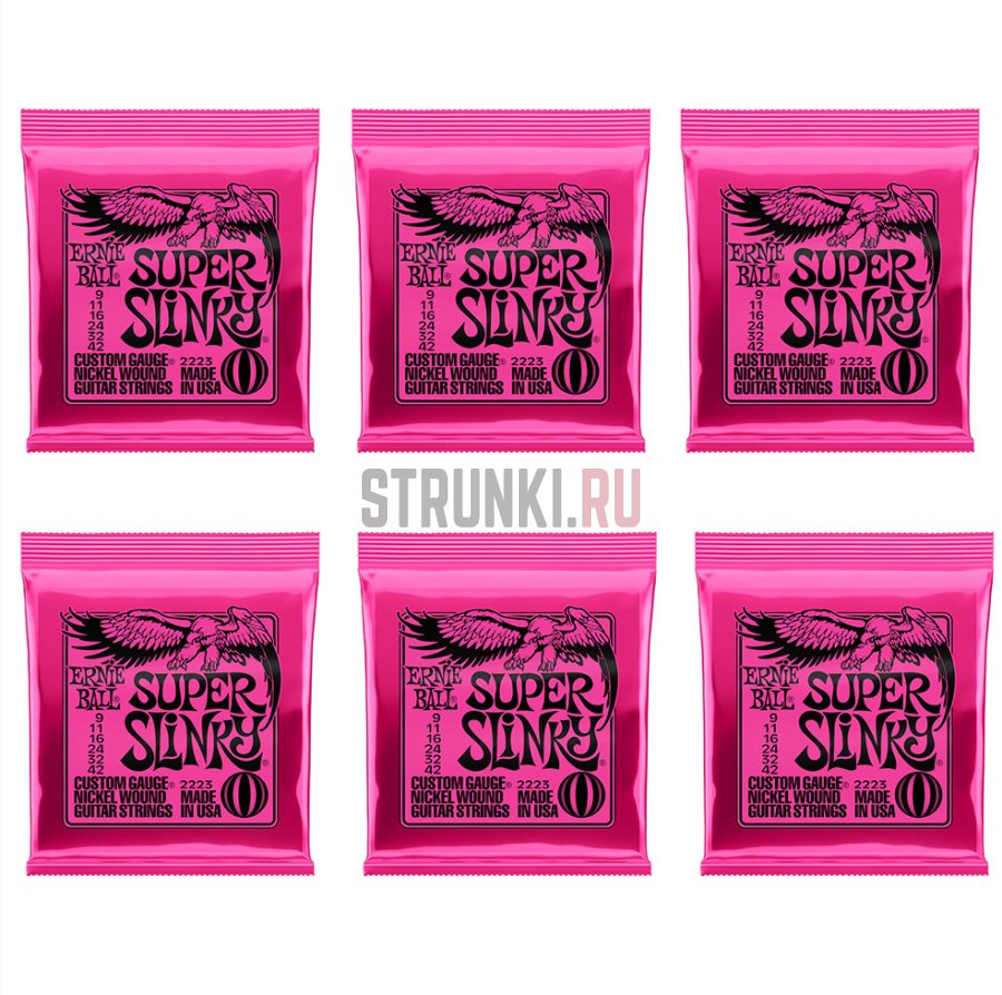 Ищешь, где купить Струны для электрогитары Ernie Ball 2223 Super Slinky, набор из 6 комплектов 9-42? Заказывай на Струнки.ру!