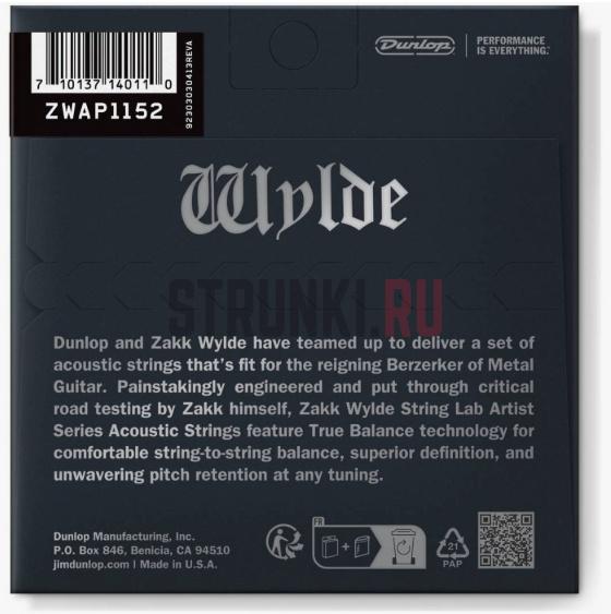 Dunlop и Закк Уайлд (Zakk Wylde) сотрудничали, чтобы создать этот комплект струн, способный выдержать игру настоящего Берсеркера металлической гитары. Обширные инженерные разработки и критические испытания самого Закка усовершенствовали формулу струн, чтобы они работали под самыми тяжелыми руками в роке. Струны Zakk Wylde String Lab Artist Series, разработанные на основе технологии Dunlop True Balance, обеспечивают оптимальную четкость и чувствительность при любой настройке.