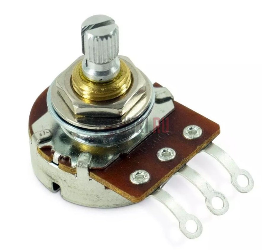 Короткий шток 6.35 мм из твердой латуни, 250 кОм. Стандартный вал со шлицом на 18 зубчиков. Отличная альтернатива более дорогим потенциометрам CTS, поставляется с 1 гайкой и 2 шайбами. Под монтажное отверстие на 6,35 мм.