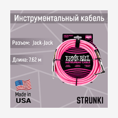 Ищешь, где купить Инструментальный кабель ERNIE BALL 6065, розовый, 7.62 м (прямой-угловой)? Заказывай на Струнки.ру!