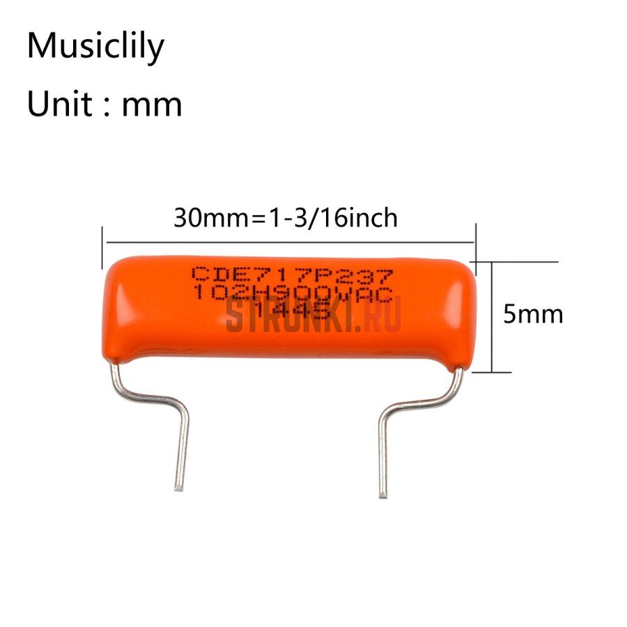 Емкость - 0.001 мкФ. Использовались на многих винтажных инструментах, в частности, на серийных моделях бас-гитиар Fender.