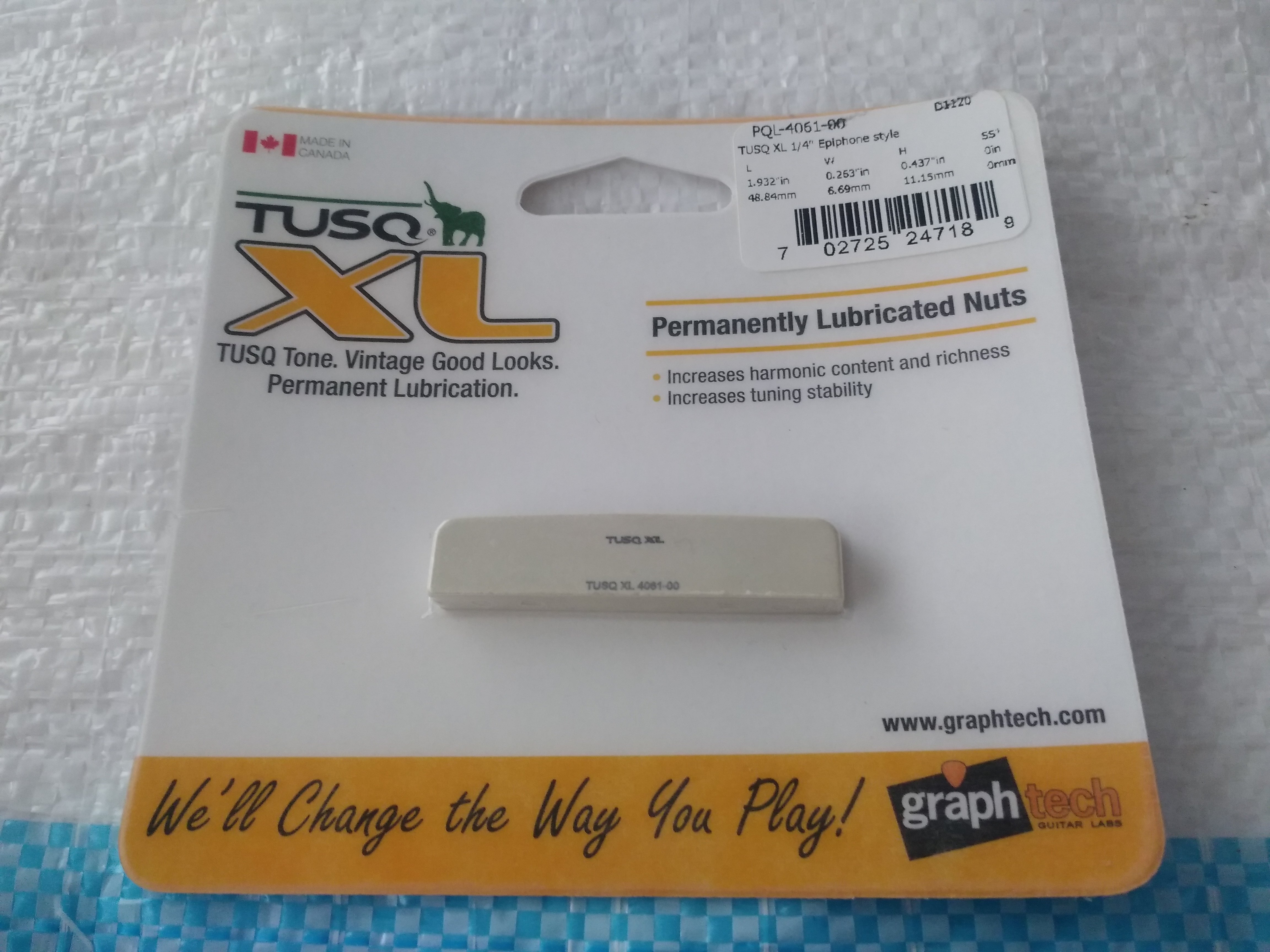 Продукция TUSQ XL стабильна от порожка к порожку как по внутренней структуре каждого изделия, так и в целом между экземплярами. С ней у вас никогда не будет проблем, присущих натуральным материалам, а звук станет гармонически богатым.