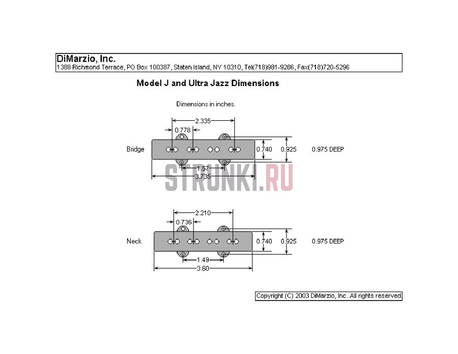 DiMarzio DP147BK Ultra Jazz Neck разрабатывался в соответствии со спецификациями звукоснимателей, установленных на Fender Jazz Bass, которые имеют одинаковые частотные характеристики, но разный размер - нековый датчик короче бриджевого.