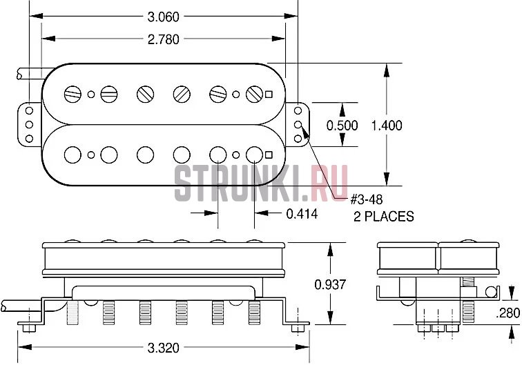Версия Trembucker для гитар с тремоло и расстоянием между крайними магнитоводами 53 мм.