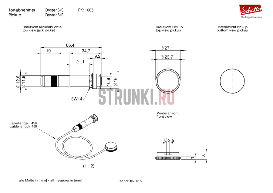 Schaller Oyster уже несколько десятилетий является классическим контактным звукоснимателем. Благодаря компактным размерам и небольшому весу его можно легко закрепить на топах гитар для спонтанных выступлений или стационарно установить в корпус акустических инструментов.