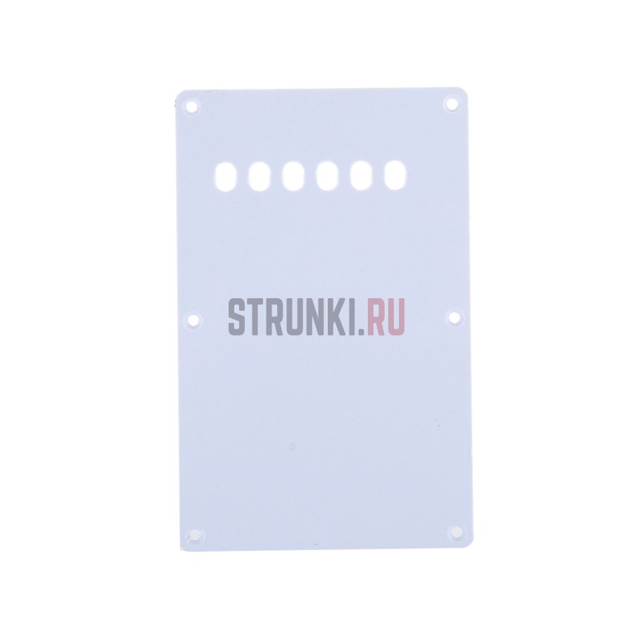 Однослойная. Цвет белый. Расстояние между отверстиями 13,2см по вертикали, 8cv по горизонтали. Покрыто защитной пленкой. Подойдет для китайских гитар Squier и проч. Саморезы в комплект не входят..