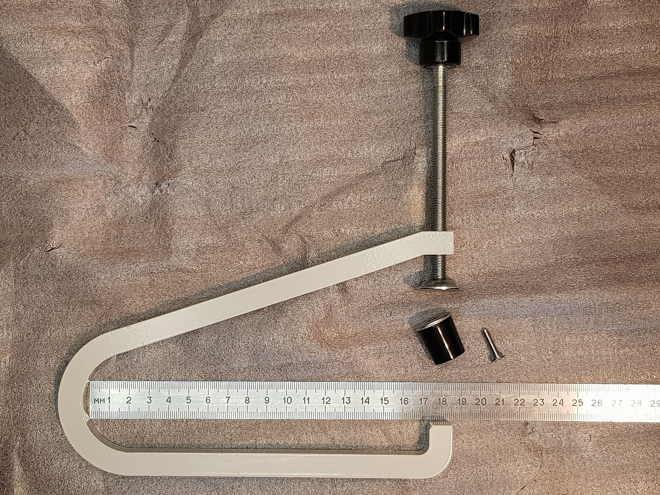 Комплектация: струбцина, сталная накладка на прижимной винт, резиновая накладка на прижимной винт.