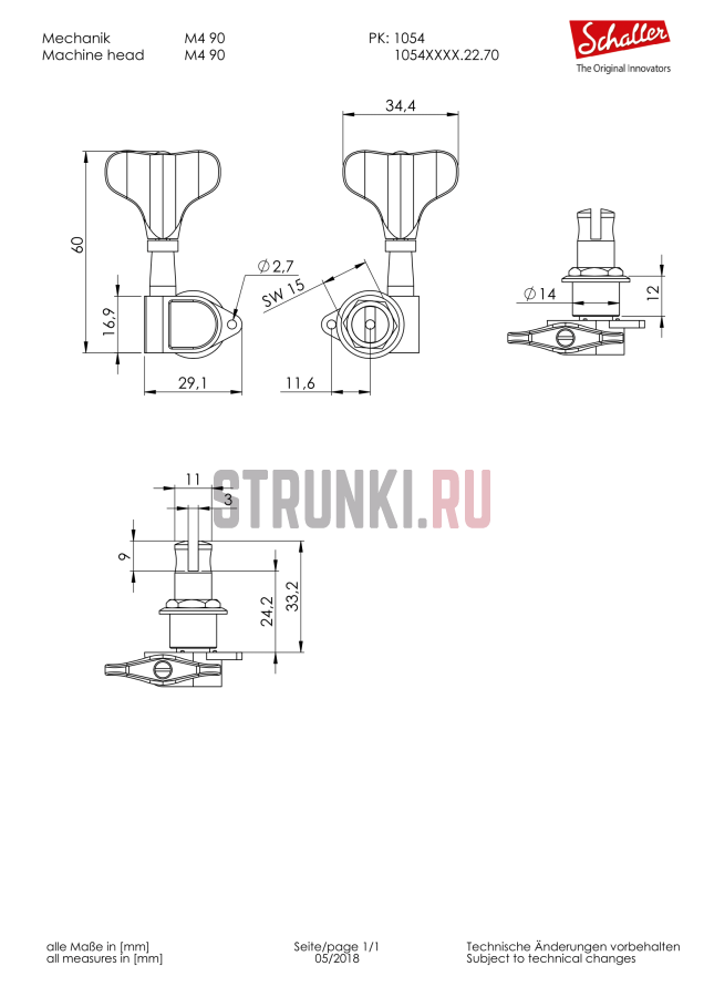 Все герметичные колки смазываются специальной смазкой Schaller для пожизненной работы без технического обслуживания.