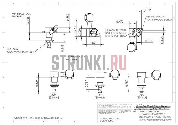 Колки с закрытого типа Hipshot по умолчанию поставляются с бутонами стиля "Hex", при этом доступно множество вариантов бутонов на нашем сайте!