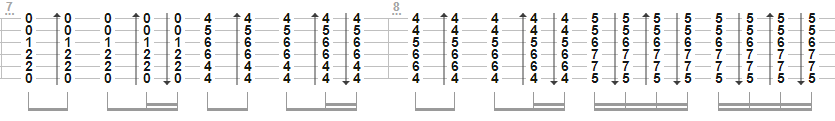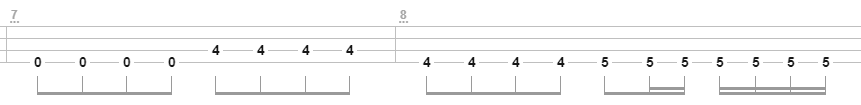 Глядя на табулатуру выше, можно сделать вывод, что бас-гитара значительно проще, так как в рассматриваемой нами песне партия бас-гитары играется одним пальцем.